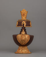 The Bhumba Set is a sacred and revered symbol in Tibetan Buddhist traditions, deeply rooted in the practice of water offerings during rituals. These beautiful vessels are more than just decorative items—they serve as powerful tools to purify the mind and space, allowing practitioners to invite positive energy and blessings into their lives. The water held within the Bhumba is considered sacred, symbolizing the cleansing of the physical and spiritual realms. With its oxidized copper body and gold plating, the elegant design adds a sense of reverence to any altar or sacred space, creating an atmosphere of peace and serenity. With each ritual, the Bhumba Set becomes a reminder of the interconnectedness of all things and the flow of divine energy that sustains us on our spiritual path.