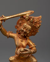 Black Manjushri Statue Gold-Plated Copper Statue | Wrathful Manjushri for Altar Decor