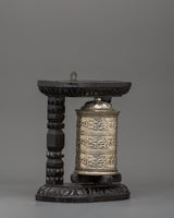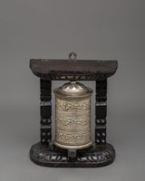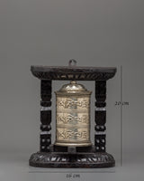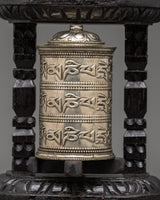 The wheel, skillfully produced by talented artisans, offers a tactile and symbolic experience founded in Tibetan Buddhist traditions. It revolves smoothly within its carved wooden base. The inscriptions exude religious energy, and the combination of copper and brass guarantees durability and aesthetic appeal. It is sturdy and lightweight (0.40kg) and looks great on meditation nooks, personal shrines, or as a spiritual present. With each thoughtful spinning, welcome blessings into your area and embrace your exercise with intention.