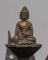 Presenting the Buddha Brass Deity Lotus Mandala, a stunning 23-cm-tall piece of exquisite handcrafted brass art. This magnificent mandala is a hallowed representation of spiritual awakening and enlightenment.