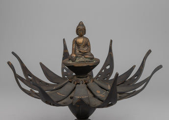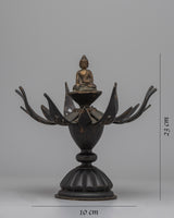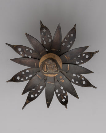 Buddhism views the lotus, prized for its purity and beauty, as a sacred symbol that symbolizes the passage from ignorance to awareness and darkness to light. Allow the Buddha Brass Deity Lotus Mandala's meaning to inspire and direct you as you travel your spiritual path.