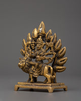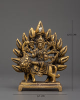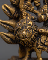 Celebrate divine strength and strong feminine energy with this stunning handcrafted Brass Durga Statue on Lion, depicting the powerful Hindu deity riding her lion. Standing 10.5cm tall and weighing 0.54kg, this controlling idol is ideal for your personal altar, puja space, or sacred home decor. Durga is regarded throughout Hinduism as the ultimate protector, the slayer of evil, and the embodiment of Shakti—the universal feminine force.