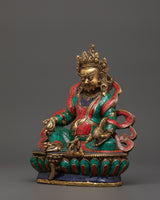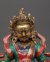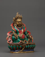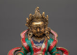 Brass Dzambhala Statue with Coral | Buddhist Altar Decor