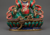 Holding a mongoose that emanates gems, Dzambhala sits in a dominant position on a lotus throne, signifying the boundless flow of wealth. With its elaborate workmanship and striking inlays showcasing ancient creativity, this Brass Dzambhala Statue is ideal for meditation rooms, ritual areas, or home altars. It is more than simply a statue; it is a spiritual challenge that seeks to maintain prosperity in all its spiritual, emotional, and material manifestations.
