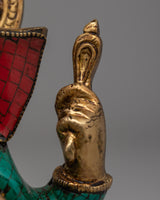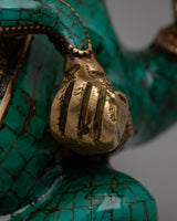 This Ganesha idol is made of effective brass and embellished with carefully placed faux stones, adding to its elegance and longevity. The turquoise and coral inlays represent protection and vitality, which adds to the statue's spiritual importance. Whether employed as a home centerpiece, a meaningful present, or a shrine artifact, this 1.26 kg masterpiece exudes heavenly energy and promotes peace and prosperity.
