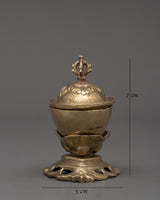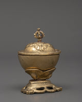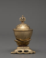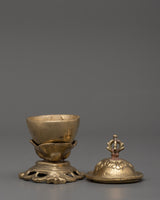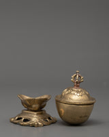 The Brass Kapala Skull Cup Set is a fantastic choice for anyone wishing to strengthen their connection to Tibetan Buddhist teachings, as it provides a functional and symbolic instrument for spiritual rituals. Its excellent craftsmanship makes it an essential addition to any altar, shrine, or meditation place, encouraging mindfulness and reverence in everyday practice.