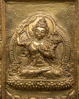 Brass Metal Thangka with Manjushri Carved | Bodhisattva of Knowledge and Wisdom