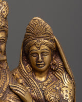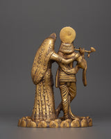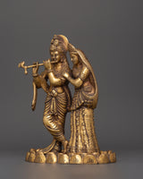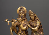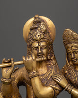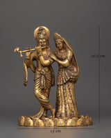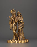 Brass Radha Krishna Statue - Hindu Deity Sculpture for Home Temple & Sacred Decor