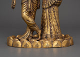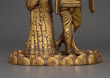 This detailed statue, which has a golden brass finish, is a timeless representation of spiritual connection, harmony, and unity. Warmth and spiritual energy radiate from this Brass Radha Krishna Statue, perfect for home temples, wedding presents, or religious areas. Its exquisite lotus base and lovely composition make it a significant focal point that brings blessings and tranquility into your room.