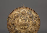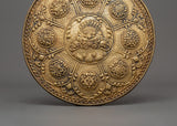 This traditional Tibetan sign is a stunning piece of art and a spiritual talisman, crafted with careful detail from solid brass. The lotus, conch, unending knot, and other fortunate symbols all stand for a blessing of luck, peace, and enlightenment. This artwork, which offers both beauty and security, exudes ancient Himalayan spirit and devotion, whether on a wall or on a shrine.