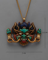 With its vibrant palette and rich craftsmanship, this locket is a testament to the artistry of sacred jewelry. Perfect for ceremonial wear or personal devotion, the Garuda locket serves as a powerful amulet. Compact yet impactful, it is a cherished item for collectors and practitioners alike, blending symbolism, tradition, and unparalleled craftsmanship into a wearable masterpiece.