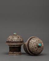 Traditional Tibetan Ritual Accessory Featuring Pure Silver and Turquoise Stone