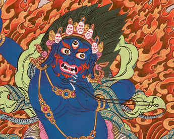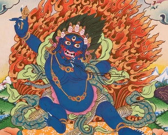 The color blue represents Vajrapani's divine qualities and spiritual potency. He is worshipped by devotees seeking protection, strength, and fearlessness in their spiritual journeys.