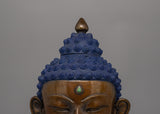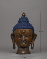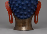 The Bronze Buddha Head Statue is a wonderfully created sculpture that captures the Buddha's tranquility and wisdom. This statue is constructed of oxidized bronze and is 31 cm in height and 21 cm in width, weighing 2.39 kg. It has a timeless and ancient aspect. Adding acrylic paint improves its appearance, with the Buddha's hair's bright blue curls standing out in stark contrast to the golden body. The beautifully crafted facial expression oozes serenity and spirituality, making it an ideal depiction of contemplative tranquility.