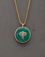 This Buddha Eyes Symbol Locket is a stunning and meaningful item representing the Buddha's all-seeing eyes. Measuring 3 cm in height and 2.5 cm in width, this locket is made of artificial stones and beautifully captures the spiritual essence of Buddhism. The symbol of the Buddha's eyes signifies knowledge and insight, serving as a daily reminder of mindfulness, enlightenment, and the path to inner peace. Its lightweight design, weighing only 0.004 kg, allows for comfortable daily wear.