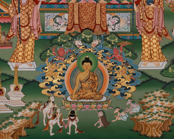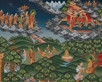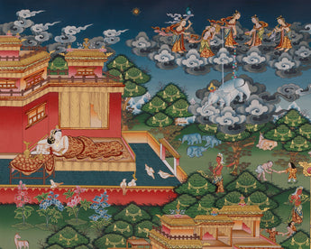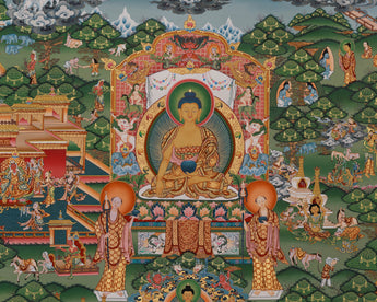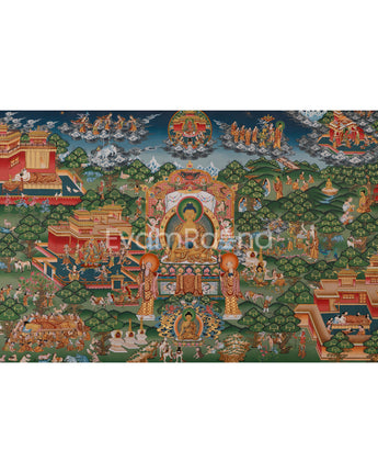 Experience the profound journey of Siddhartha Gautama with this meticulously crafted Buddha Life Story Canvas. This canvas print illustrates significant events in the life of Siddhartha Gautama, who became the Buddha after achieving enlightenment. Each scene is clearly depicted, bringing to life the key instances on the Buddha's path to spiritual awakening. From his birth in Lumbini's lush gardens to his moment of enlightenment under the Bodhi tree, and finally to his first sermon in Sarnath, this artwork captures one of the world's most respected spiritual leaders' deep journeys.