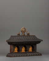 Buddha Set with Wooden Altar Box | Tibetan Buddhist Shrine Decor