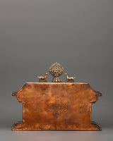This Buddha Set with a Wooden Altar Box is a remarkable piece of spiritual decor, perfect for meditation spaces, shrines, or home altars. The collection features three sculpted, gold-plated Buddha figures housed in an artistically carved wooden altar box. With a height of 26 cm and a width of 34 cm, this set weighs 2.27 kg and is meticulously crafted from copper, wood, and gold plating, making it ideal for any altar shrine decor.
