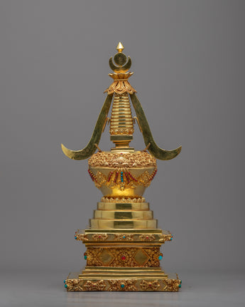 24k Gold plated Buddhist Chorten Stupa | Traditional Himalayan Art