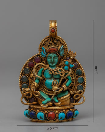Enter the realm of divine favor with the Buddhist Deity Locket, a sign of spiritual devotion and protection. This locket emanates timeless elegance and reverence, crafted with painstaking detail on silver and embellished with genuine gemstones such as lapis lazuli, turquoise, coral, each vibrating with its own distinct energy. Standing 5cm tall, it provides a concrete connection to the spiritual realm.