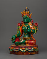 Handmade Buddhist Goddess Green Tara Statue for Healing and Devotion