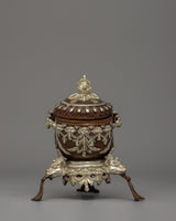 The Kapala set holds the nectar used in higher esoteric rituals. It offers liberation to gods and deities to ensure their devotion. The offerings are said to be transformed into the Wisdom Nectar, a liquid form of the deity's Enlightened Mind.