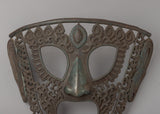 This Tibetan Iron Mask has deep roots in Buddhist and Himalayan traditions, and it is frequently utilized in ritual performances, tantric ceremonies, and as a protective symbol. The delicate carvings on the mask signify divine energies that repel negative forces while encouraging spiritual awareness and attentiveness. The violent emotion represents the turning of ignorance into knowledge, which is a central precept of Buddhism. This mask, adorned with symbolic patterns, is more than just an antique; it serves as a potent spiritual emblem for people seeking inner peace, clarity, and enlightenment.