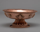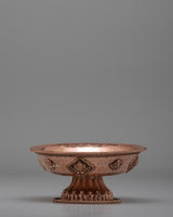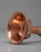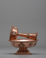 This Traditional Buddhist Offering Serkyem is expertly created from durable copper, reflecting a timeless link to sacred rites. This Serkyem stands 18.5 cm tall, 16 cm wide, and weighs 0.48 kg, making it the ideal combination of functionality and spiritual elegance. It is revered for its religious importance and is an important tool in Buddhist ceremonial offerings, where it is frequently used to bring holy beverages or libations to deities as a show of devotion and thanks. Its polished copper surface emanates radiance, emphasizing its function as a conduit for blessings and spiritual virtue.