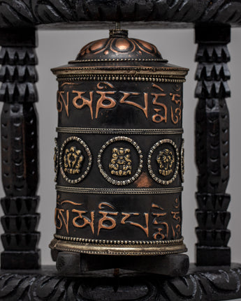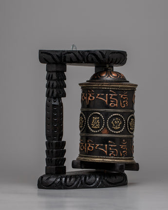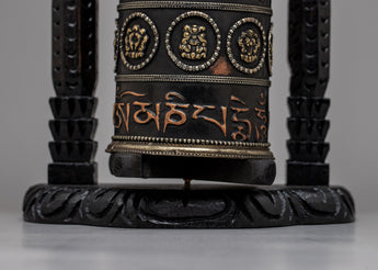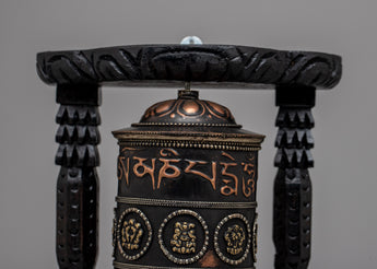 Through the use of the prayer wheel, practitioners participate in an age-old custom that is thought to promote spiritual awareness and inner serenity. Craftsmanship and sacredness emanate from the handcrafted copper body and hardwood frame, which elevates it to a treasured focal point for personal meditation areas or holy shrines. The Buddhist Prayer Wheel Mantra is a potent emblem of devotion and spiritual connection that can be used for both group worship and solitary reflection.