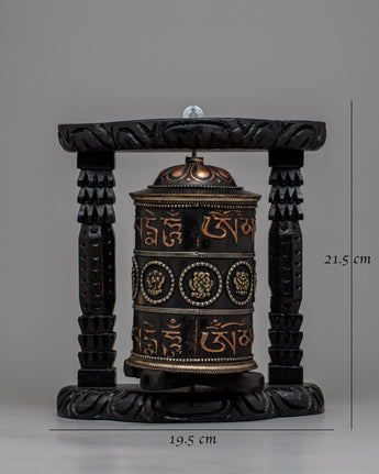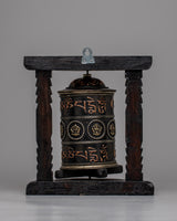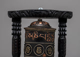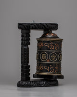 Buddhist Prayer Wheel Mantra Carved with Wooden Frame