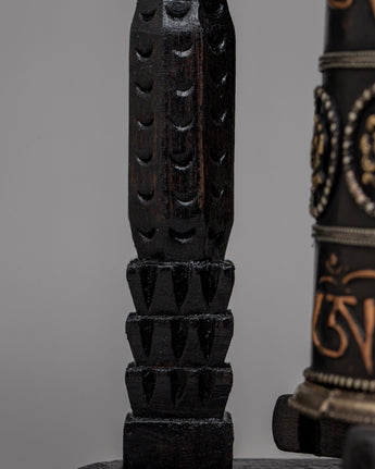 Buddhist Prayer Wheel Mantra Carved with Wooden Frame - Evamratna