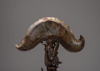 The Kartika Knife is a powerful tool in Buddhist tantric rituals, representing the virtues of fierce compassion and knowledge with its exquisite workmanship and sacred symbolism. This ritual tool, whether employed in ceremonial rituals or held in high regard as a representation of spiritual transformation, serves as a constant reminder of the difficult path toward awakening and the transforming potential of compassion and wisdom in conquering obstacles in life.