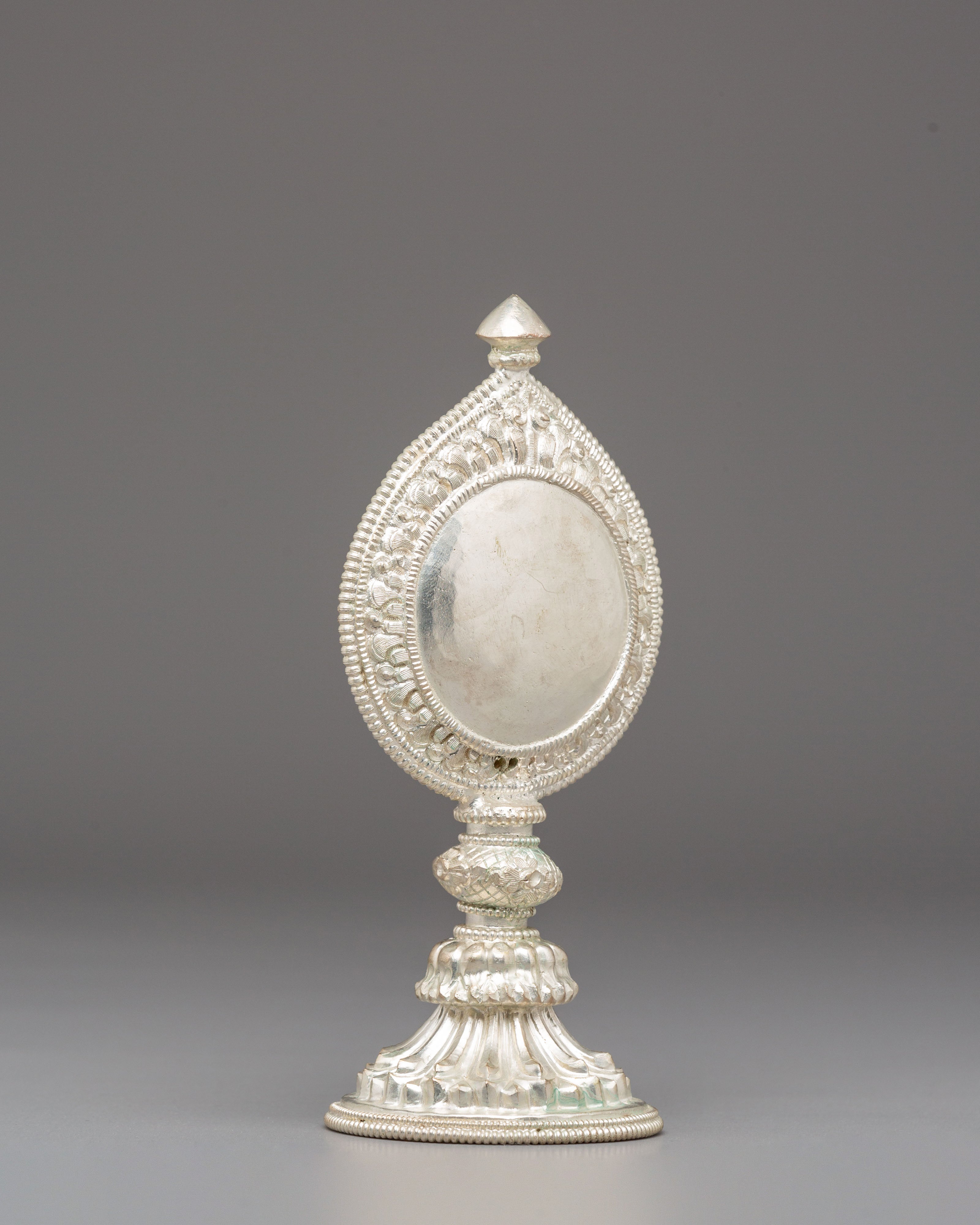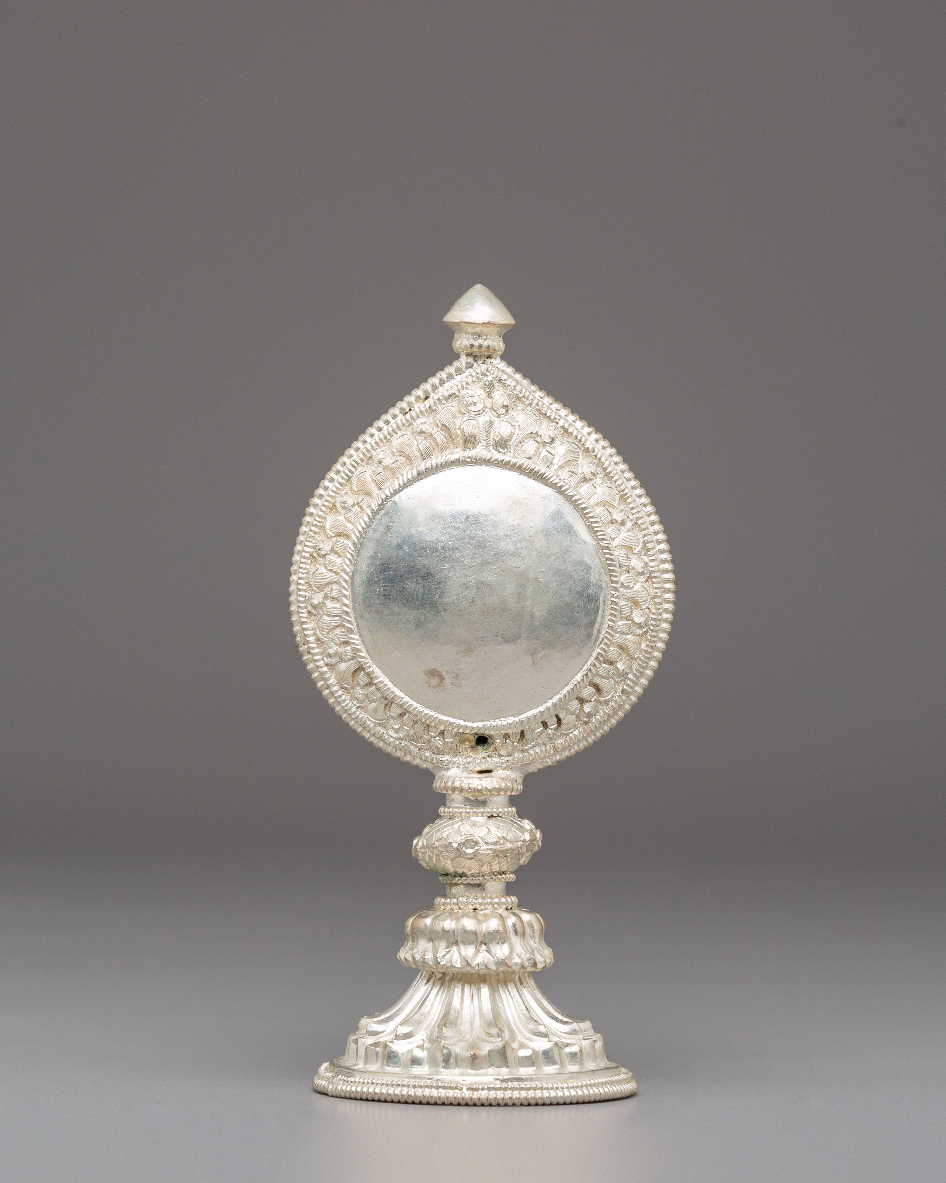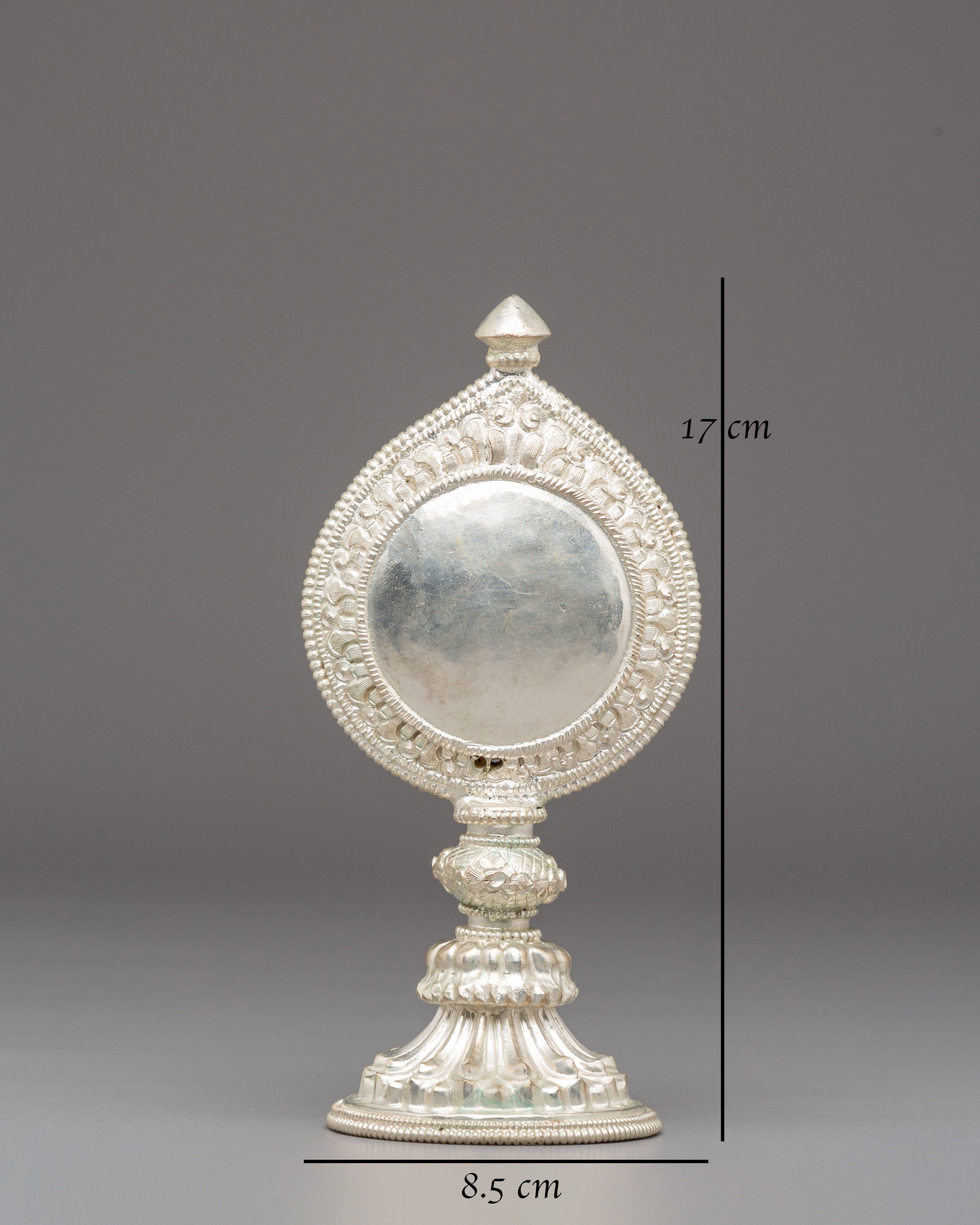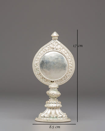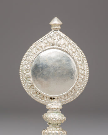 Sacred Silver Plated Ritual Mirror | Himalayan Spiritual Artifact