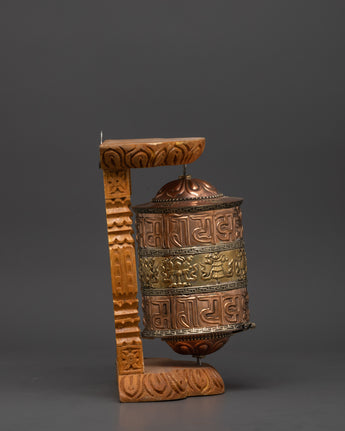 Buddhist Sacred Prayer Wheel | Sacred Wood Frame