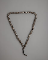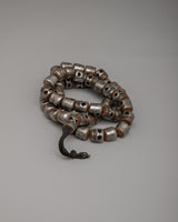 This Buddhist Skull Head Mala is expertly created from an enduring iron body, providing both strength and long-lasting beauty. With a total length of 64 cm, each skull bead is 2.1 cm tall and 1.7 cm wide, resulting in a strong yet attractive structure. This mala weighs 1.57 kg and is substantial in both shape and significance, assuring a physical and spiritual presence. Iron's symbolic link with strength and persistence makes it an appropriate material for a Buddhist meditation implement.