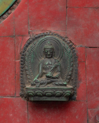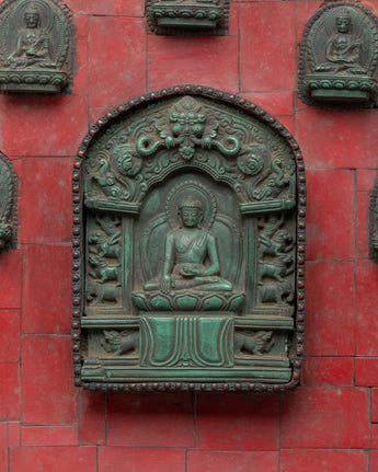 The red and turquoise design is a common feature in Himalayan decor, combining aesthetic beauty with spiritual profundity. This handmade Buddha panel, whether placed in a sacred corner of your home or given to a spiritual practitioner, exudes serenity and reverence, making it an ideal gift for anyone seeking peace and a divine connection in their surroundings.