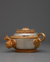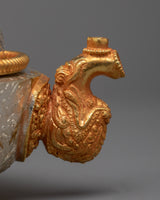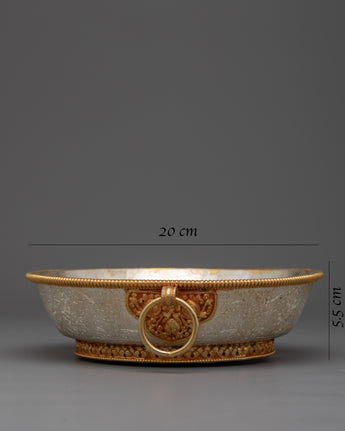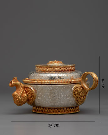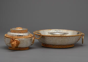 Introducing our stunning Buddhist Water Offering Prayer Set, expertly fashioned from copper and plated in both silver and opulent 24k gold. This set captures the essence of holy rites, including an elegant vase for presenting prayers and libations to the divine. Each piece, which includes a teapot and plates, is thoughtfully crafted to add to the spiritual environment of your sacred area.