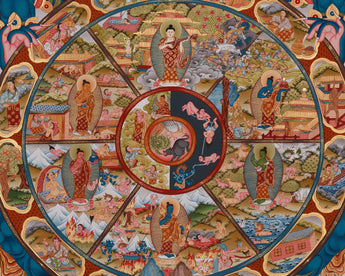 Buddhist Wheel of Life Thangka Print | Detailed Representation of Samsara and Enlightenment