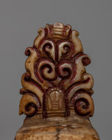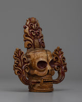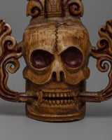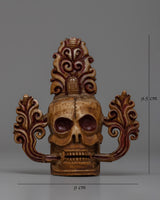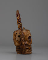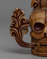 This hand-carved skull head, made of ethically obtained buffalo bone, is a stunning work of art influenced by Buddhist tradition. Its elaborate workmanship and spiritual significance make it an uncommon decorative object that radiates mystery and spiritual energy. Whether placed as a focal point in your home or as an artistic accent, this skull head represents the connection between life, death, and spiritual transformation.