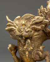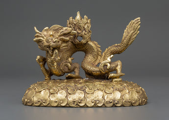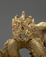 This finely made brass dragon candle holder is a striking display item that combines cultural richness and spiritual symbolism. It measures 11.5 cm in height, 15.5 cm in breadth, and weighs a substantial 1.86 kg, making it suitable for both practical use and religious adornment. The dragon sits on a flowery foundation and exudes royal strength, making it ideal for altars, meditation places, and spiritual shrines.