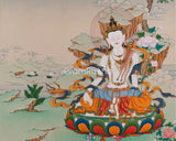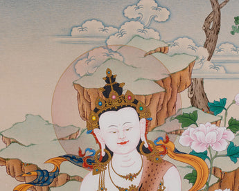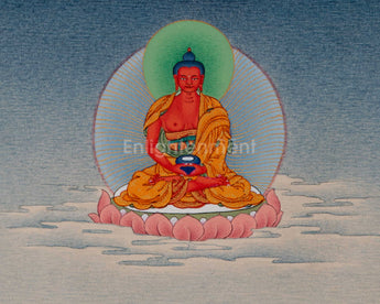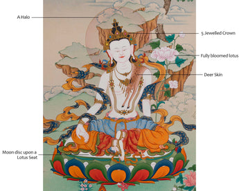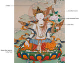 Immerse yourself in the divine embrace of compassion and enlightenment with our exclusive Transcendent Compassion Thangka, featuring the revered bodhisattva Chenresig with Buddha Amitabha atop.