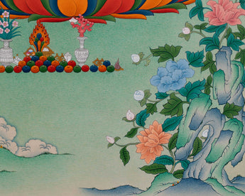 As requested for consecrations/blessings, we can take thangka to Monasteries/Rinpoches from nearby Boudha Stupa. We kindly ask you to offer $50 for the monasteries for blessings/consecration services.