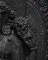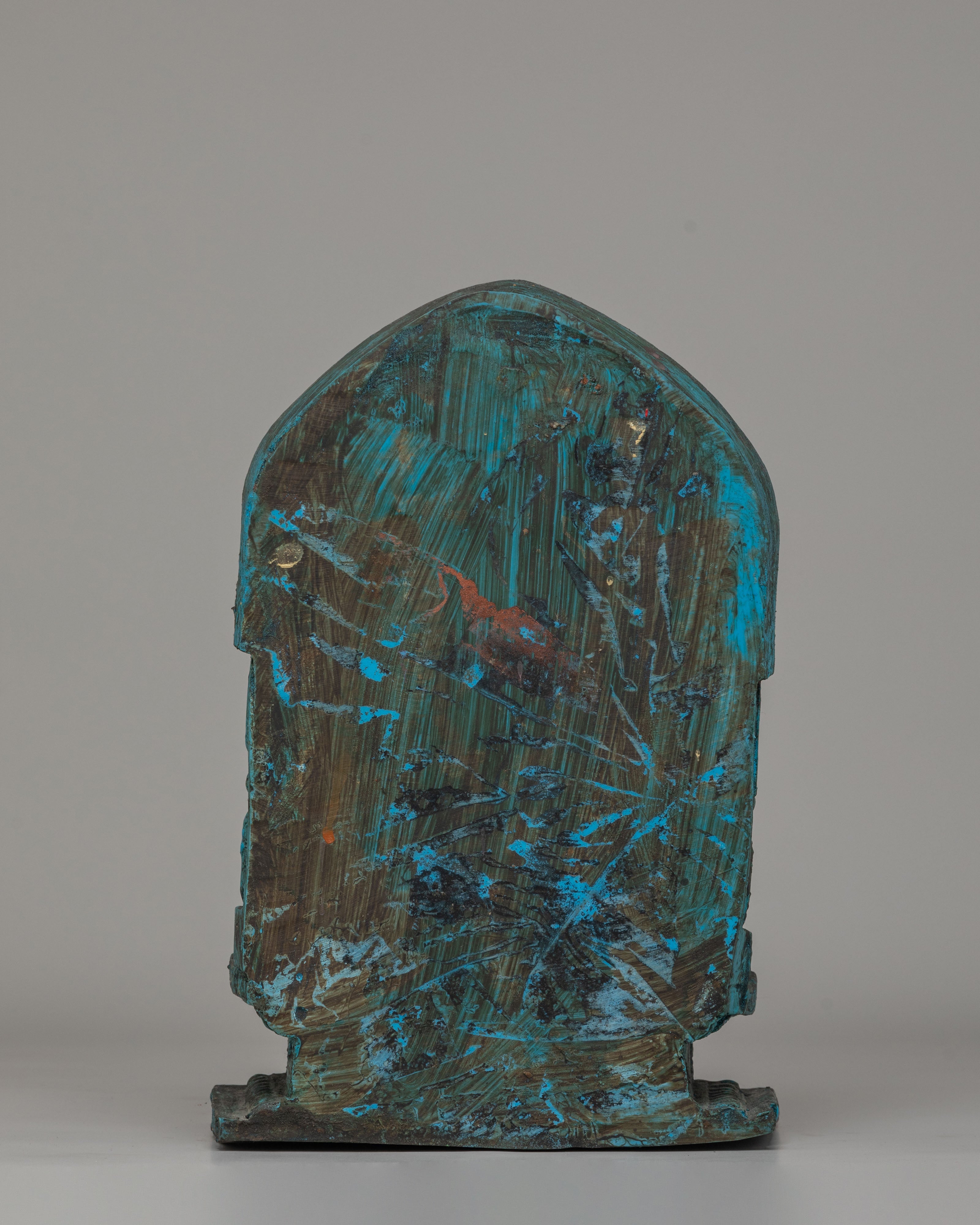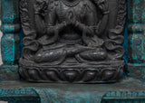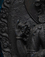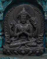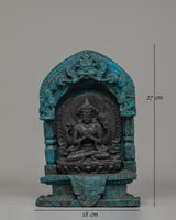 This Chenrezig Bodhisattva Statue for Altar is made from stone dust with epoxy binder, measuring 27cm in height, 18cm in width, and weighing 1.9kg. The statue features a striking dual-tone finish—dark central figure embraced by a turquoise-style archway—giving it a powerful presence for meditation rooms, personal shrines, or spiritual spaces. Every detail of the seated form reflects the artisan’s refined skill and traditional Himalayan craftsmanship.