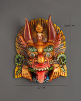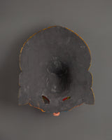 This exquisite Cheppu Wooden Mask Wall Hanging is a powerful wooden wall hanging designed to give any space strength, protection, and divine guardianship. This 34.5cm tall mask, with its colorful acrylic colors and eye-catching features, is a fantastic depiction of Cheppu, a well-known Newar guardian spirit who is renowned for his capacity to ward off evil and negative energy.