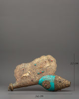 This filigree work conch for ritual is a sacred Tibetan Shankha traditionally used in Buddhist ceremonies, temple offerings, and meditation practices. The conch symbolizes the spreading of Dharma (spiritual teachings), purity, and divine enlightenment. This intricately crafted conch shell, 22cm tall and 34cm wide, is a gorgeous and spiritually significant addition to altars, ceremonies, and holy spaces.