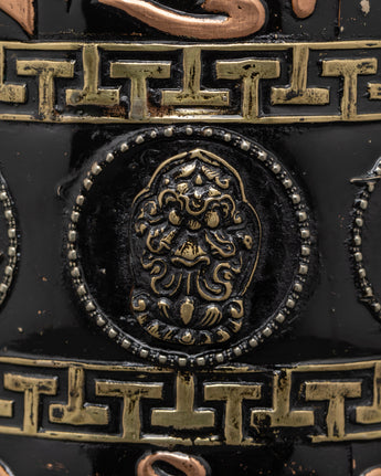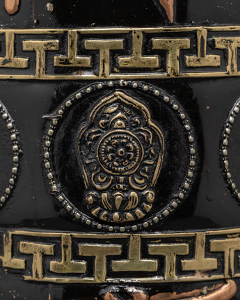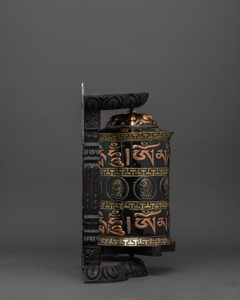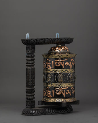 Copper & Brass Prayer Wheel | Sacred Black Wood Frame