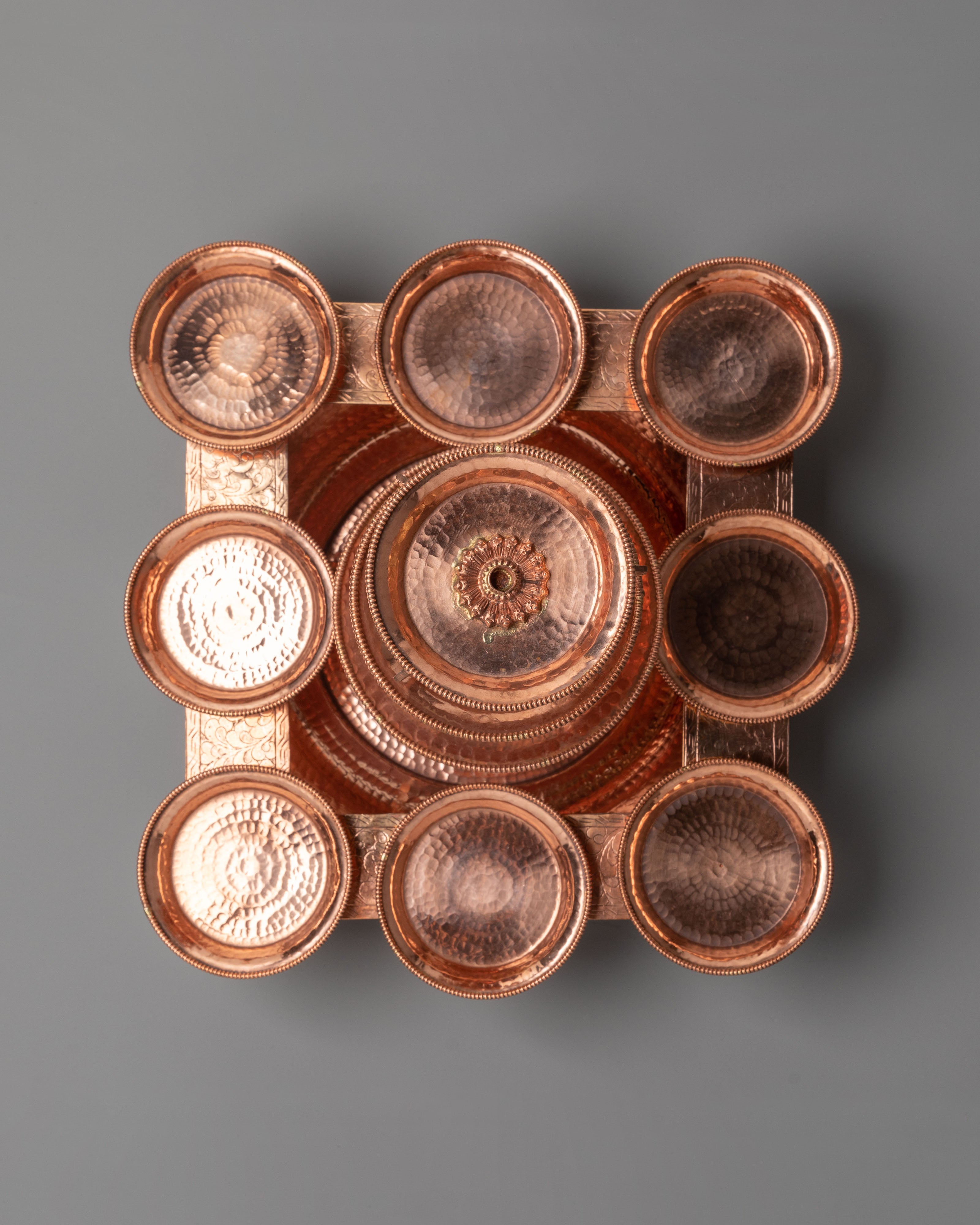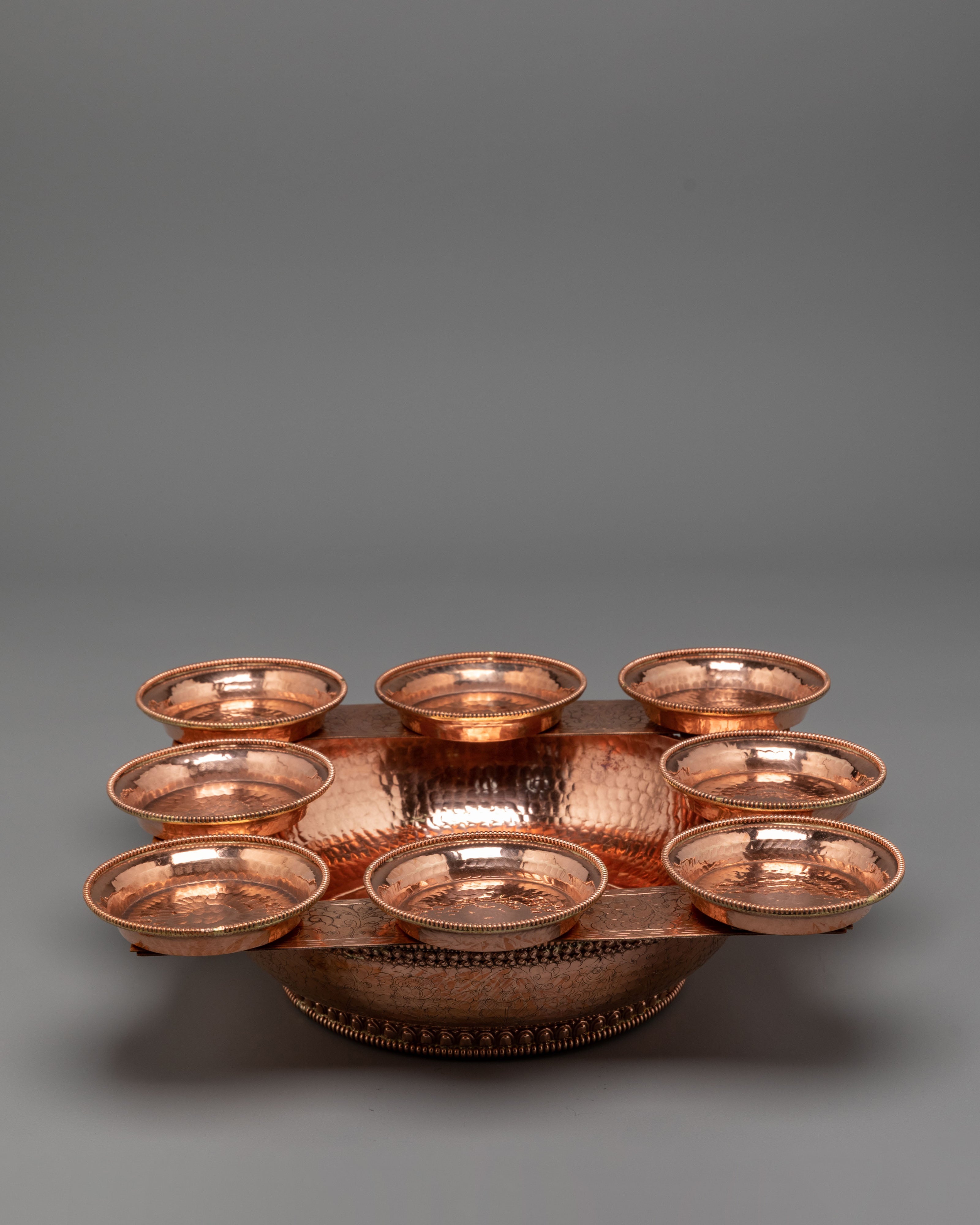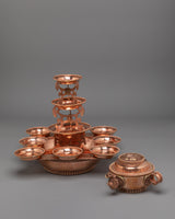 Copper Buddhist Water Offering Set | Traditional Tibetan Ritual Offering Vessel