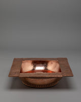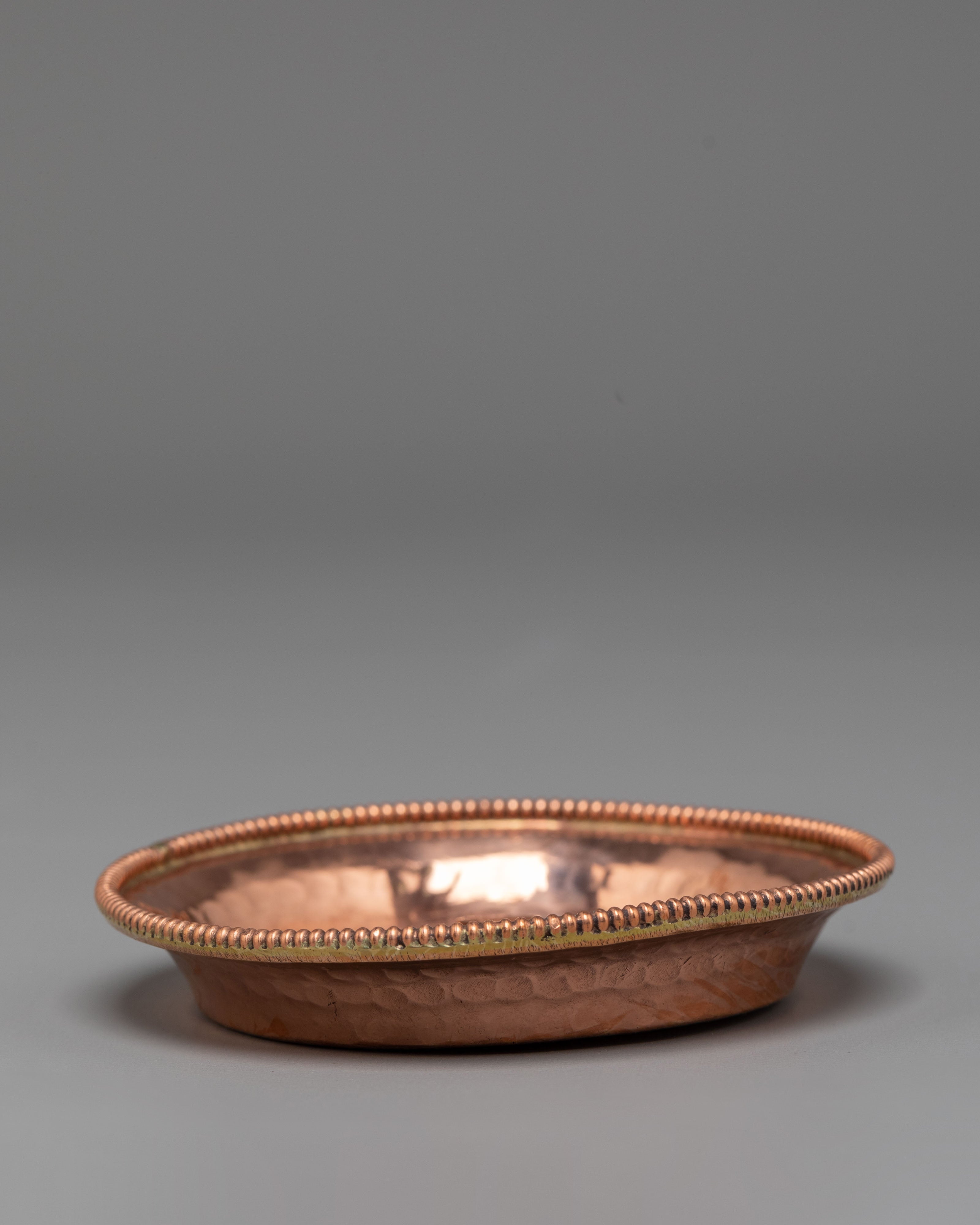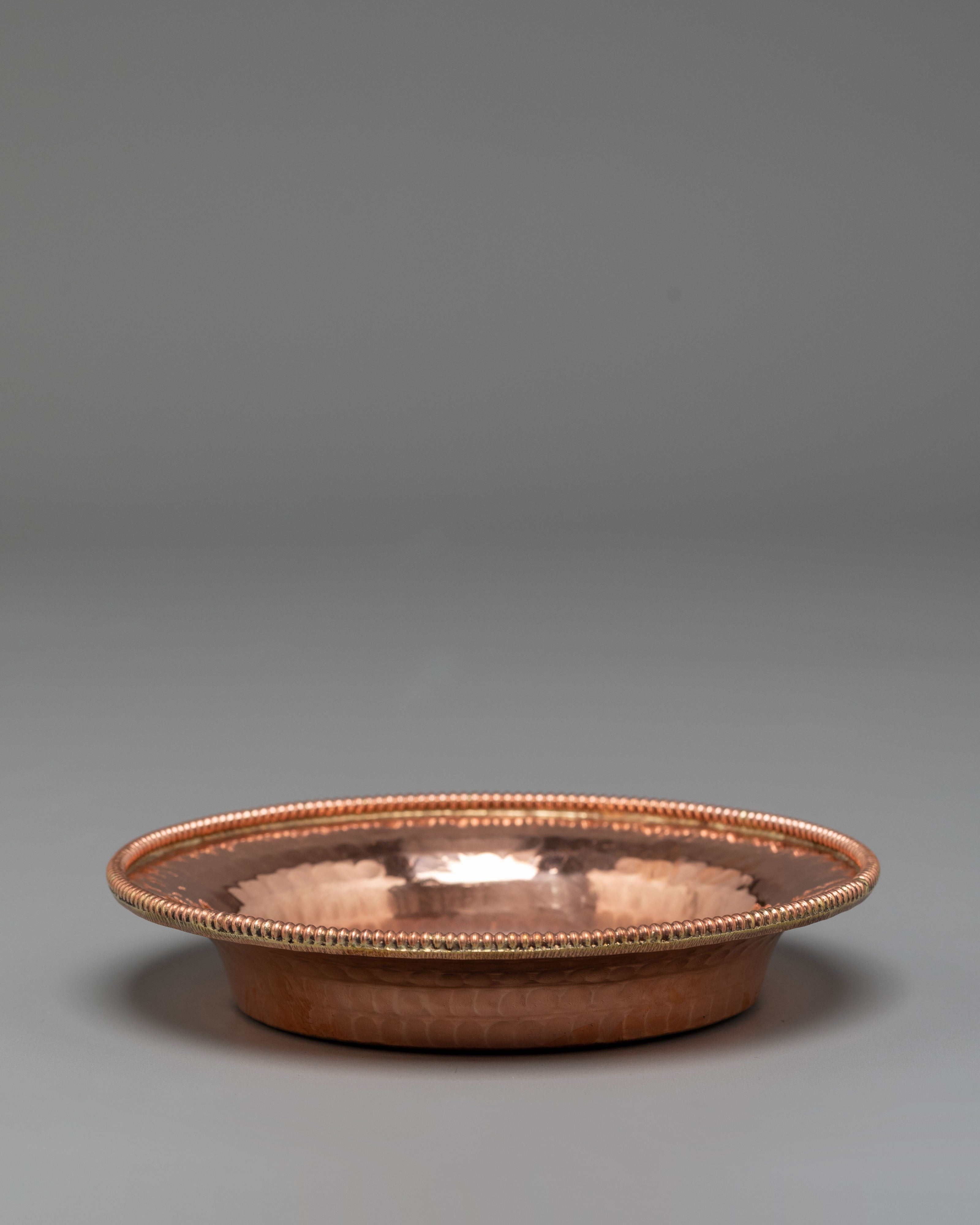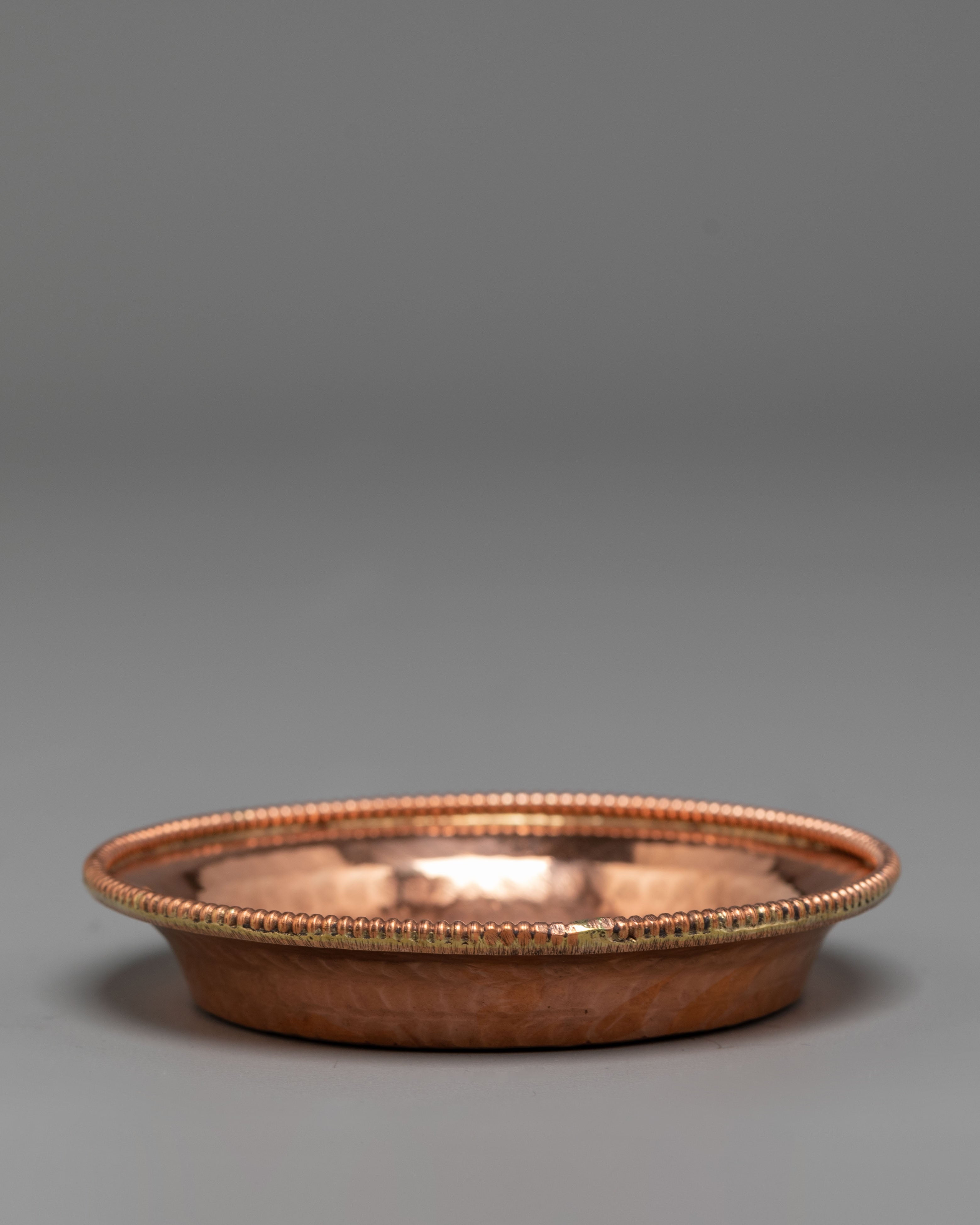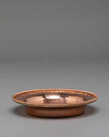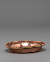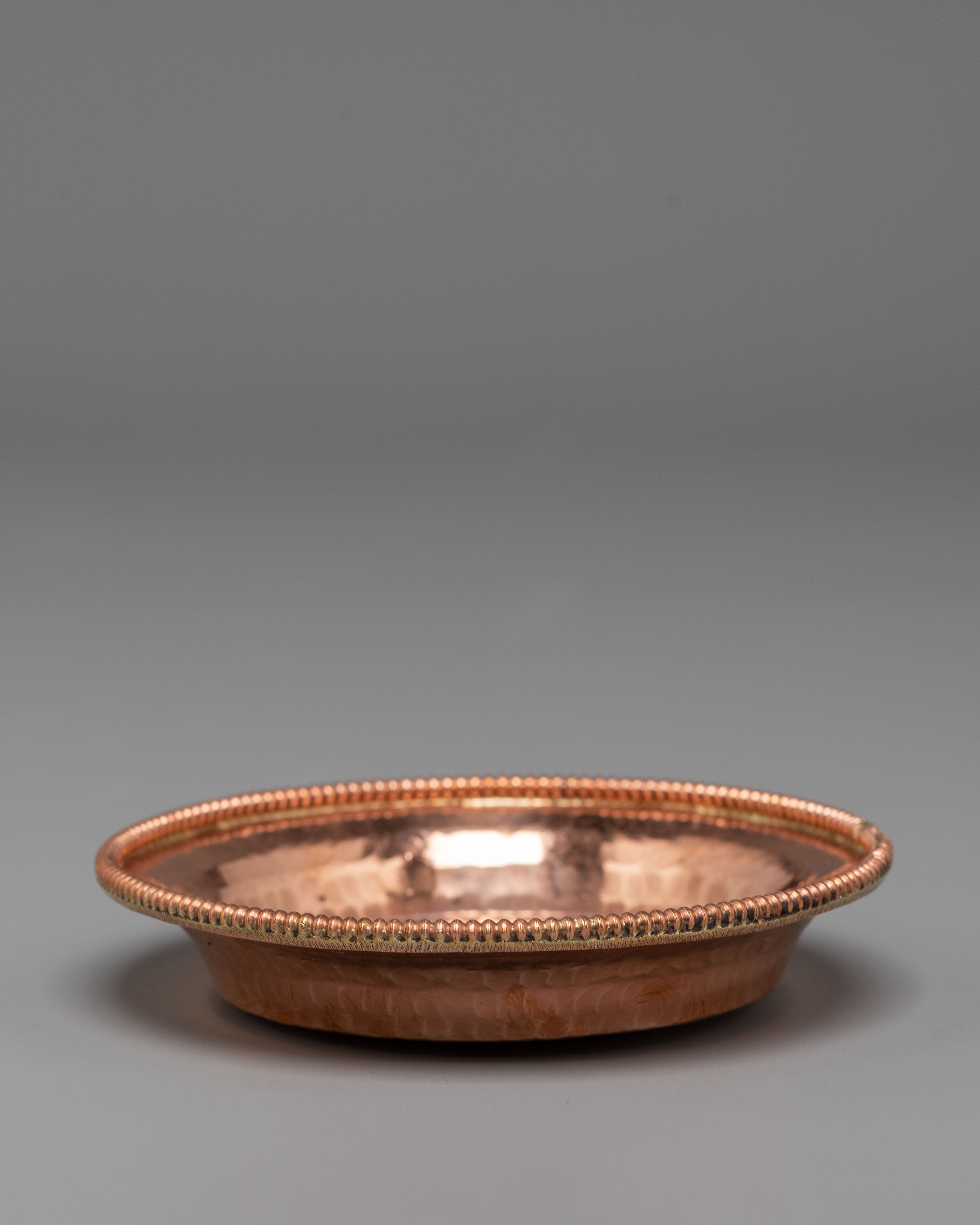 Each vessel in this Copper Buddhist Water Offering Set is meticulously crafted by Himalayan artisans. The patas and plates are intended for ritual use on altars, whereas the copper pot and plates with stands add visual appeal to the sacred setting. The smooth, warm glow of copper reflects light beautifully, symbolizing the conversion of material contributions into spiritual virtue. Water offerings are a kind of respect for the Buddhas, showing purity of intent and thanks for wisdom and compassion. This handcrafted set captures its essence with intricate workmanship and symbolic balance.