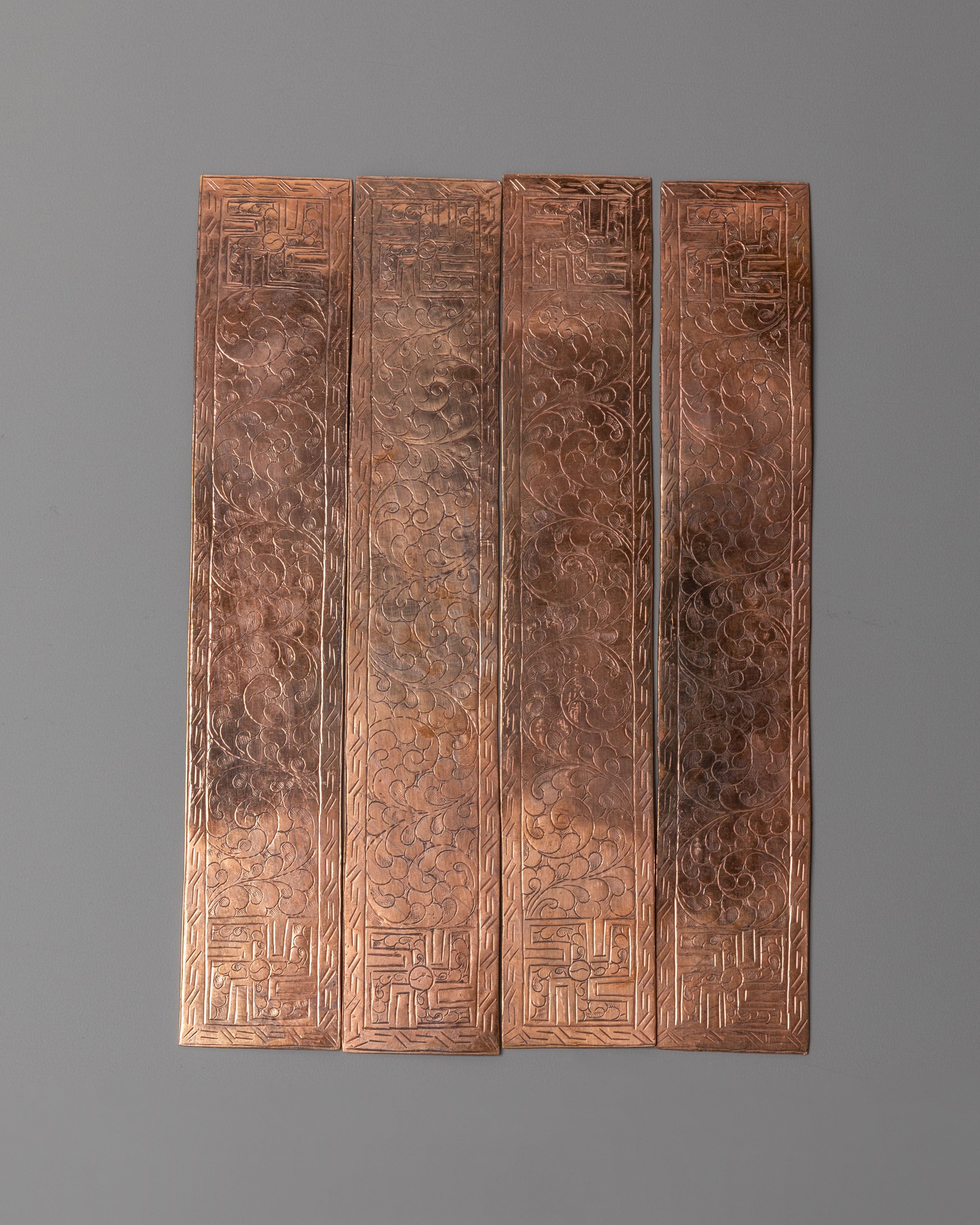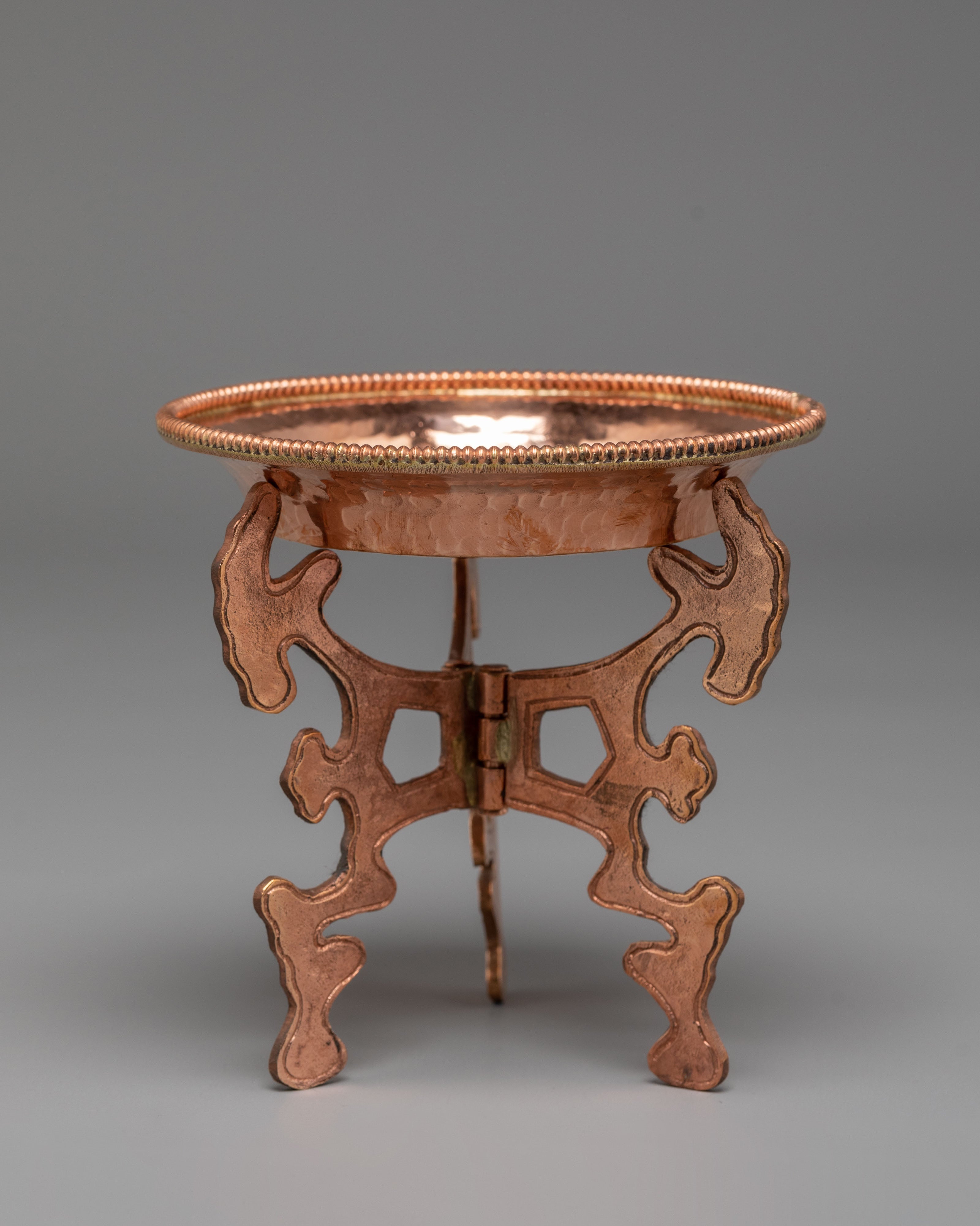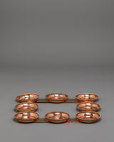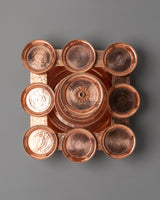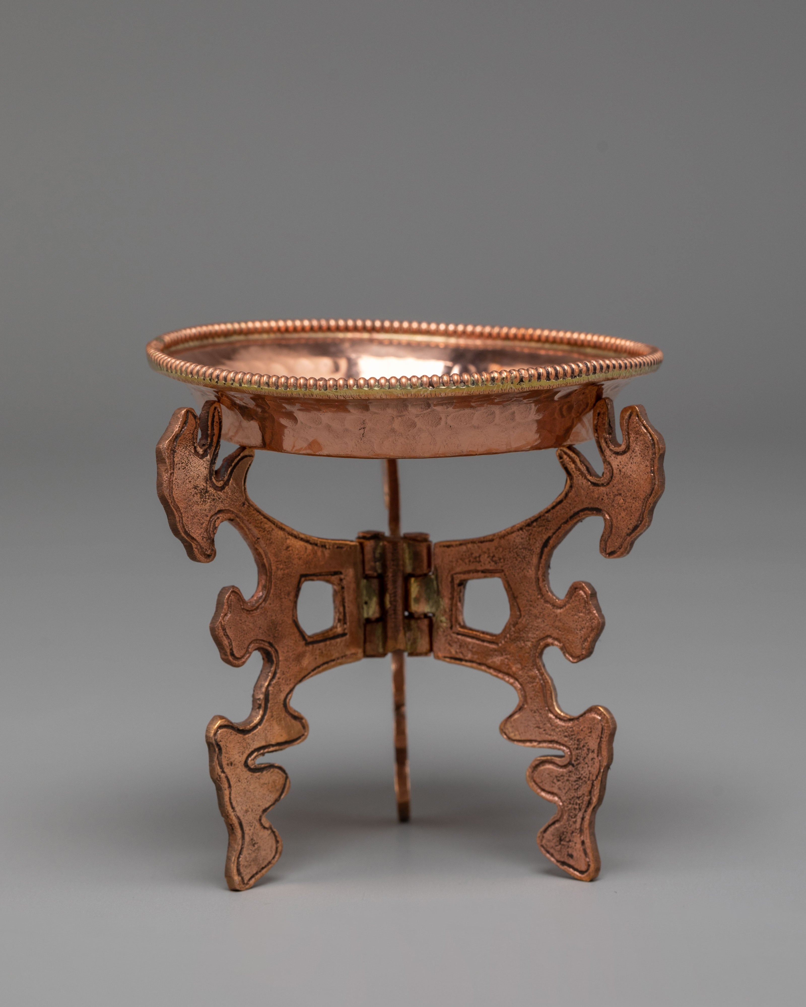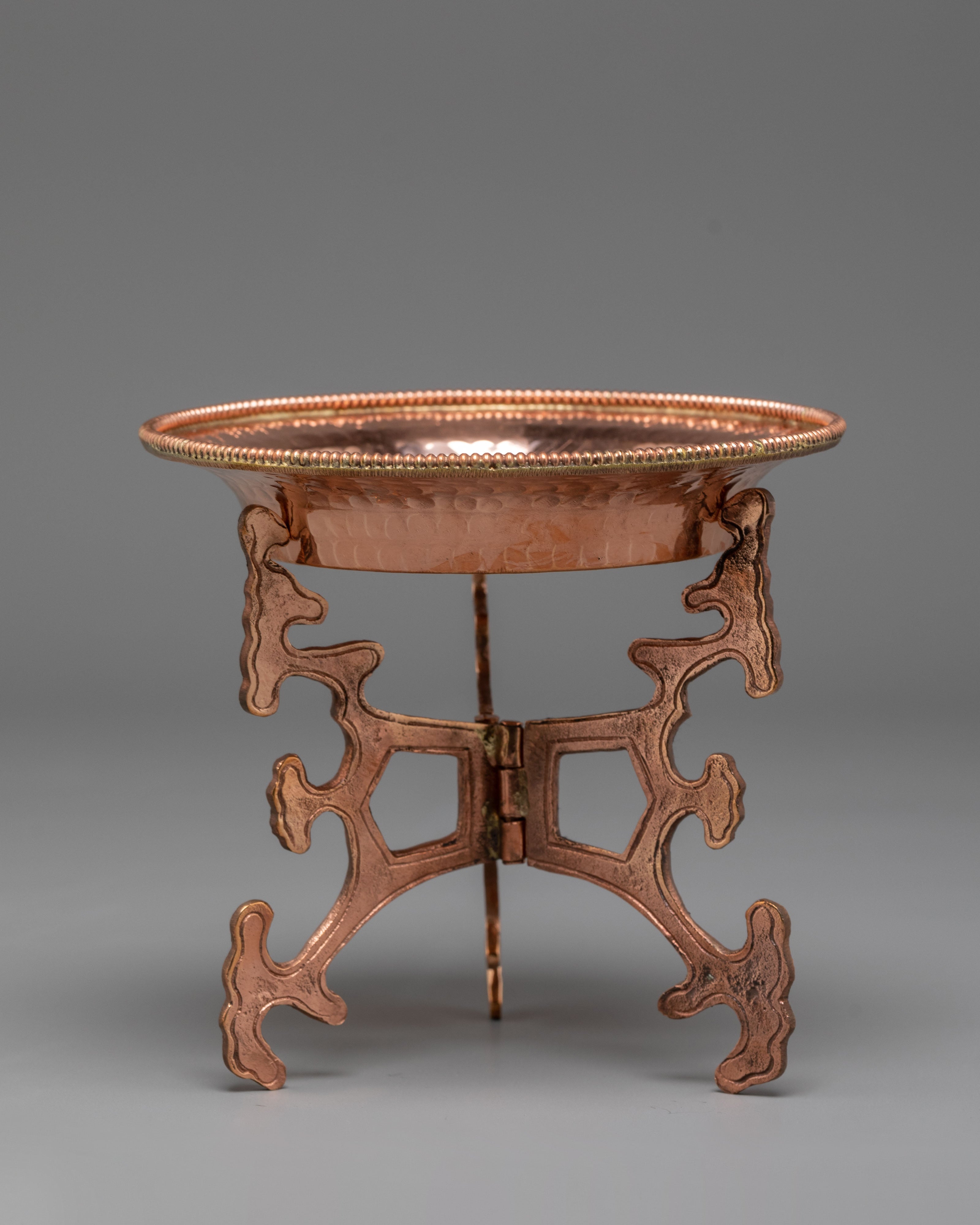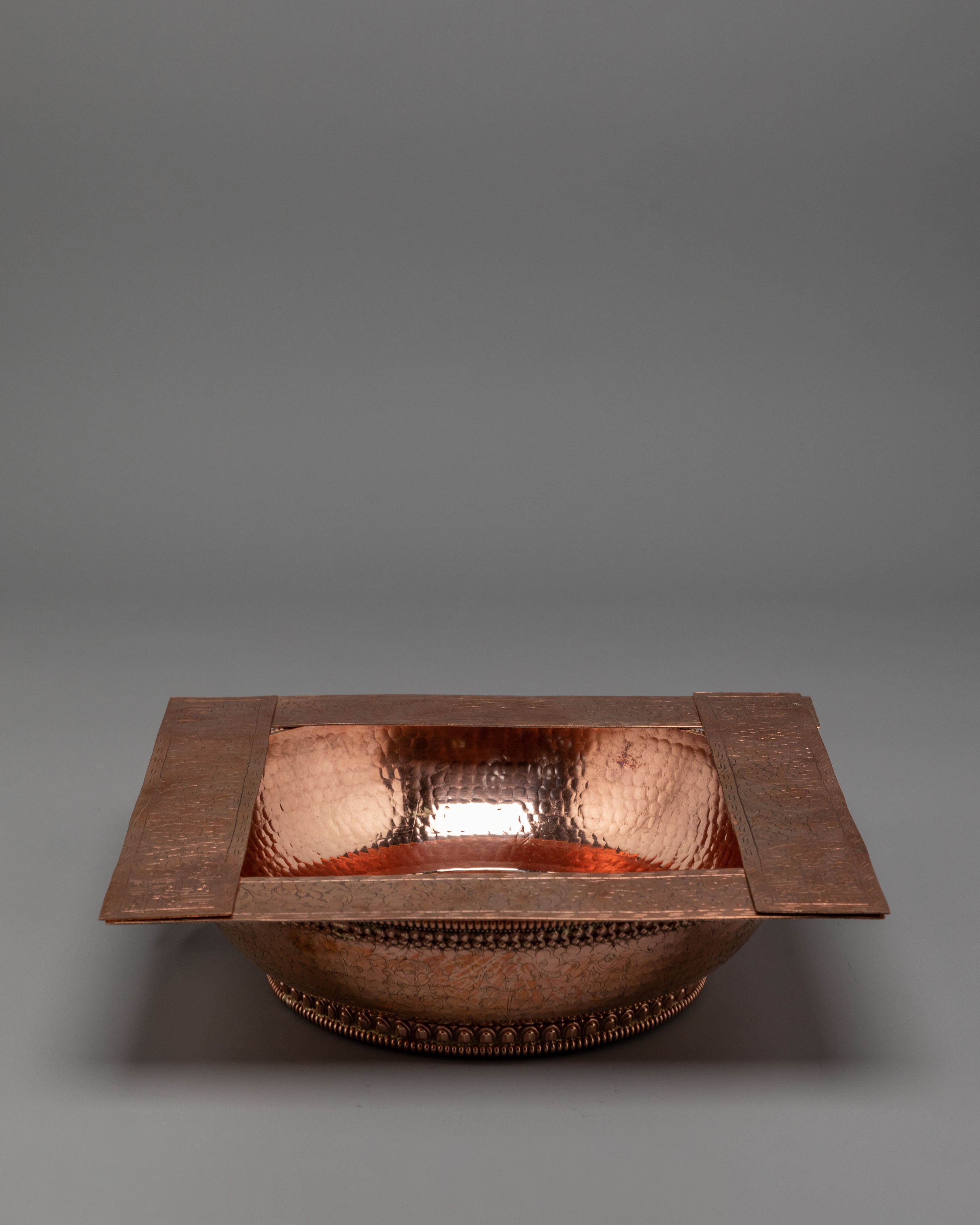 Each vessel in this Copper Buddhist Water Offering Set is meticulously crafted by Himalayan artisans. The patas and plates are intended for ritual use on altars, whereas the copper pot and plates with stands add visual appeal to the sacred setting. The smooth, warm glow of copper reflects light beautifully, symbolizing the conversion of material contributions into spiritual virtue. Water offerings are a kind of respect for the Buddhas, showing purity of intent and thanks for wisdom and compassion. This handcrafted set captures its essence with intricate workmanship and symbolic balance.