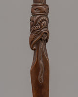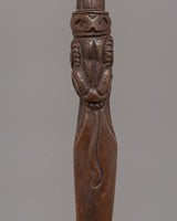 This handcrafted Copper Dorje Phurba is a holy ceremonial item representing Tibetan Buddhist traditions' transformational power. Expertly made from oxidized copper, this phurba is beautifully carved, representing accuracy and spiritual force. Its dimensions are 22.5 cm in height and 2.5 cm in breadth, with a weight of 0.26 kg, making it excellent for ceremonial usage or as an inspirational addition to your altar.